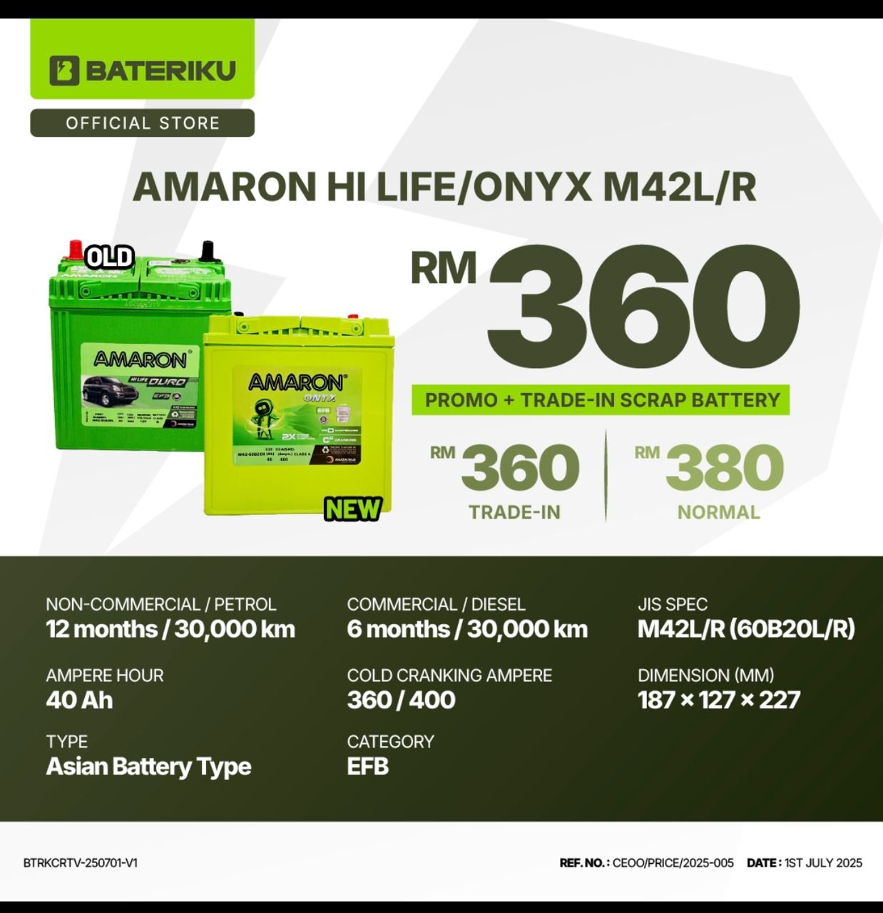 Kami hanya membekalkan jenama bateri yang terbukti tahan lama dan dipercayai oleh ribuan pengguna jalan raya di Malaysia.